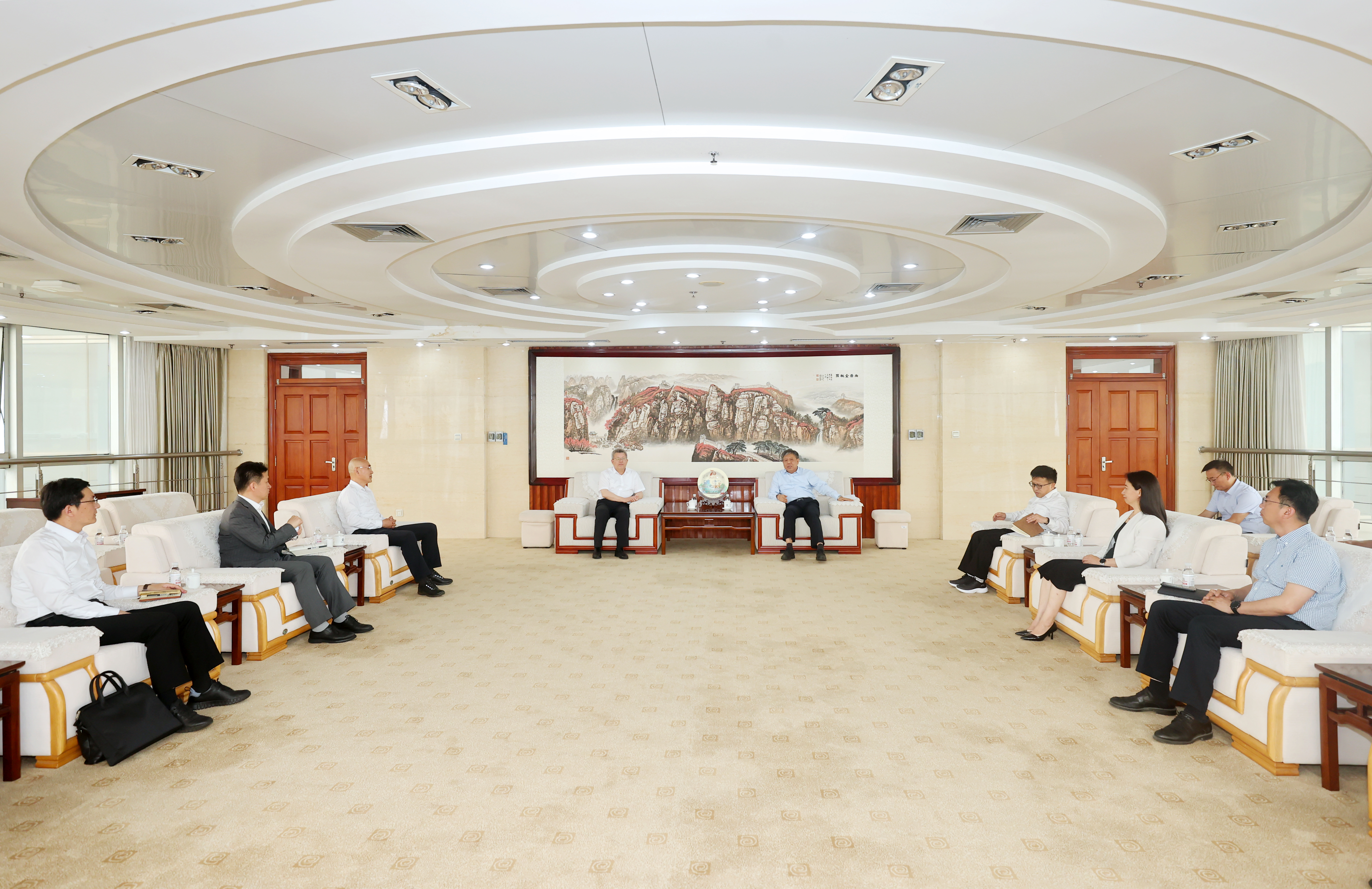 杨天梅对中国石油大学(华东)长期以来支持、帮助学校发展表示衷心的感谢,对中国石油大学(华东)近年来高质量发展取得的显著成效表示诚挚的祝贺。他简要介绍了学校学科建设、科技创新以及成果转化等方面的情况,表示石油大学作为高水平行业特色大学,是学校对标学习的榜样,期待双方充分整合优势资源,聚焦化工、材料、能源等学科前沿,在联合申报项目、平台、成果以及人才培养、学科建设、干部教师挂职访学等方面深化合作,共同为国家“双碳”目标和山东“化工强省”建设贡献新的更大力量。