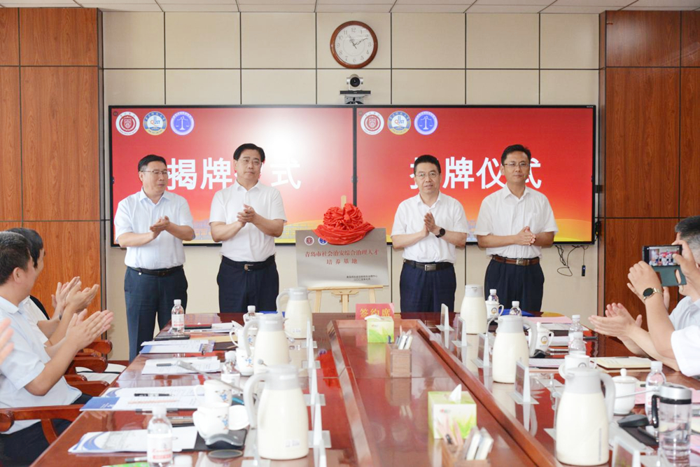 7月2日上午,“青岛市社会治安综合治理人才培养基地”揭牌仪式在学校举行。青岛市委政法委二级巡视员邵立晓,市委政法委委员、市综治中心主任齐元星,学校党委常委、副校长吕万翔,党委常委、宣传部部长张洪坤出席仪式。