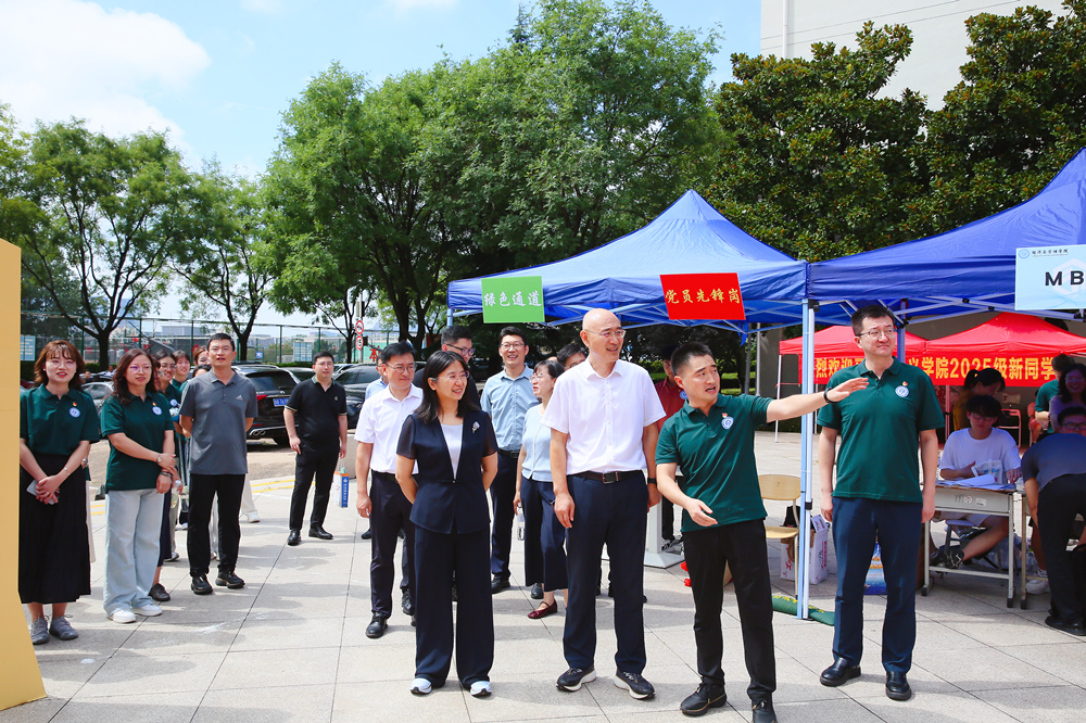 经济与管理学院以“青春启新程 经管赴星海”为主题,聚焦红色文化育人、校园文化育人和专业文化育人三个核心场景,构建了从“融入”到“启程”的迎新育人格局。“抗战胜利80周年”图景元素与“75周年校庆”场景元素纵横交织,贯穿中国经济发展史脉络阶梯,以新生亲笔签名的“星星之火”点亮中国式现代化宏伟历程;红毯连接“启程之路”,指引新生踏向由“我爱经管”主题雕塑构成的学科打卡点;领跑学长、迎新志愿者、党员骨干全程参与迎新准备和报到全过程,激发新生的归属感与认同感;实时动态更新的线上迎新图册将迎新现场搬上“云端”,指尖即可下载查看被镜头定格的每一个美好瞬间。