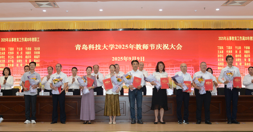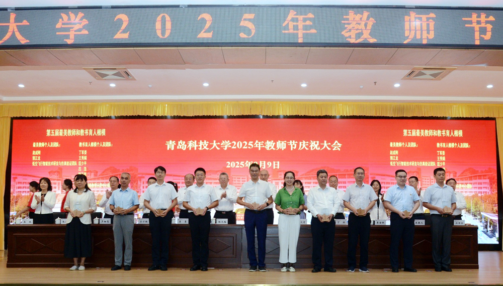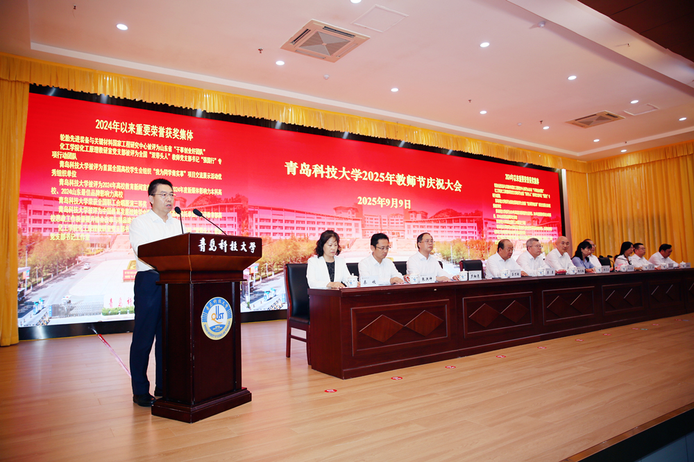 践行教育家精神,谱写强国梦华章。为庆祝第41个教师节,9月9日下午,beat365官方网站2025年教师节庆祝大会在崂山校区第二报告厅举行。学校领导和领导班子成员杨天梅、陈克正、李勇、沈文青、吕万翔、丁林、罗细亮、李金红、张洪坤、朱敬义、秦姣,全国优秀教师、全国创新争先奖、国家科技进步奖获得者汪传生出席大会。党委副书记沈文青主持会议。