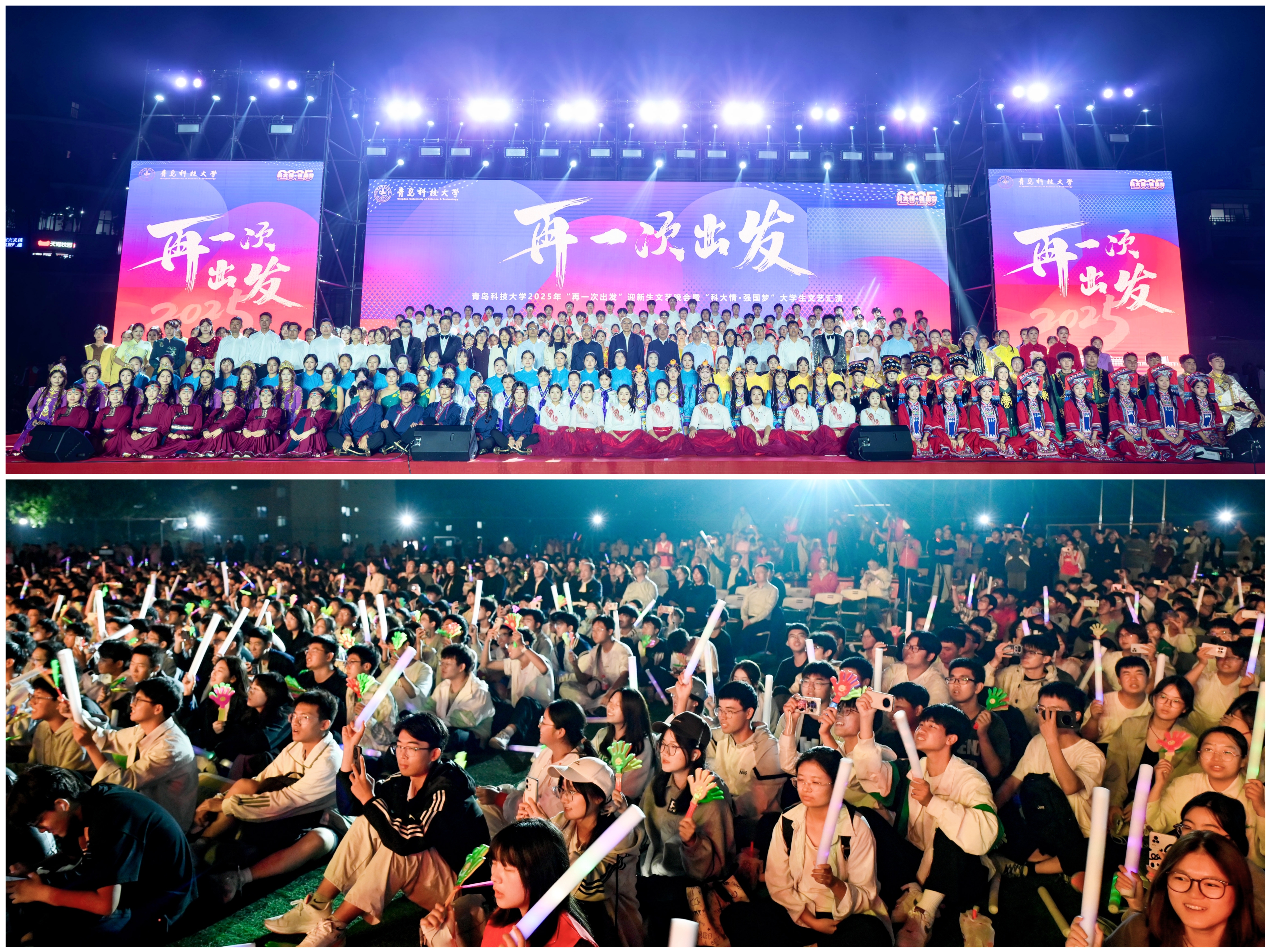 9月28至29日,beat365官方网站2025年“再一次出发”迎新生文艺晚会暨“科大情·强国梦”大学生文艺汇演在四方校区西礼堂、崂山校区运动场隆重举行。学校领导和领导班子成员杨天梅、陈克正、李勇、吕万翔、丁林、罗细亮、李萍、吴明铂、李金红、张洪坤、朱敬义、秦姣参加活动。