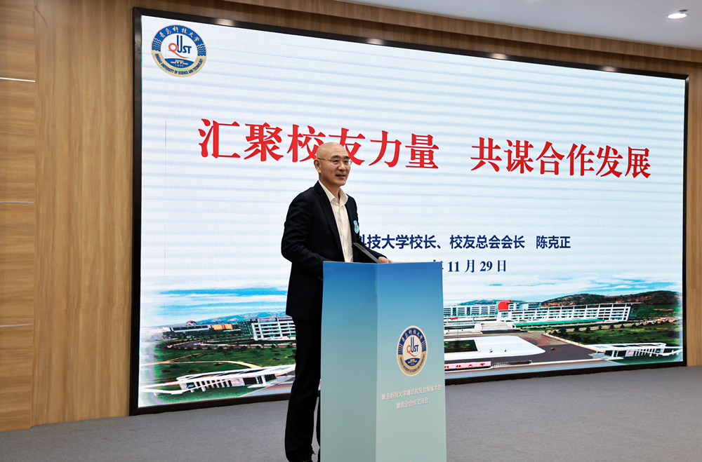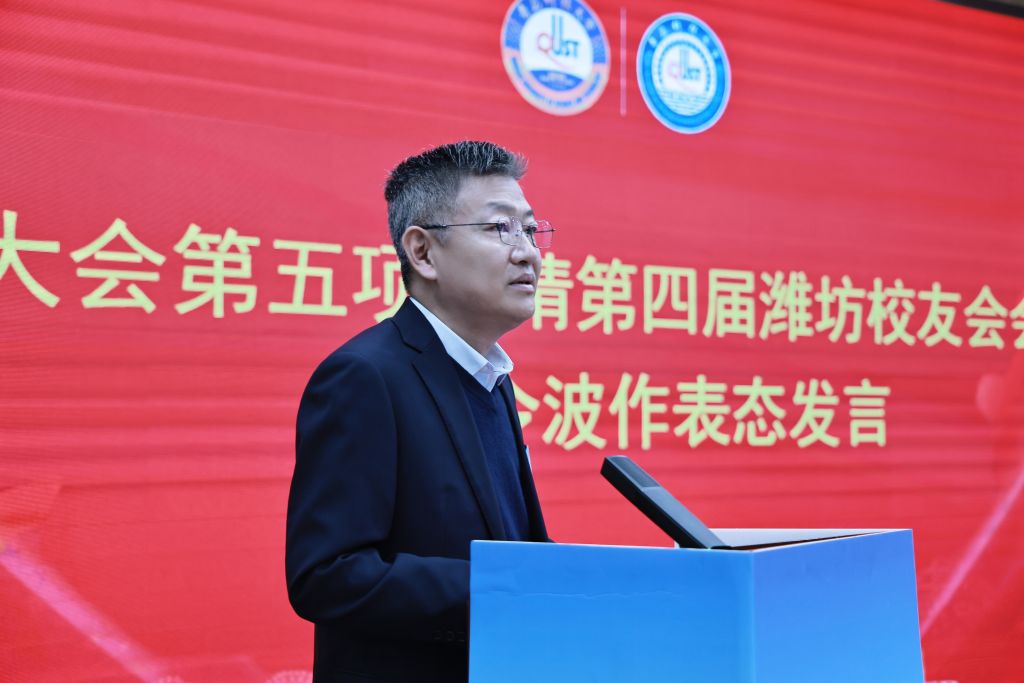 陈克正代表学校向与会嘉宾及校友全面通报了母校近年来的发展成就。他表示,建校75年来,在全体师生和校友们的同心努力下,青科大已发展成为以工为主,多学科协调发展、特色鲜明的多科性大学,始终践行“两服务一引领”发展战略:在服务国家战略上,围绕天然橡胶等关键战略物资领域深耕细作,与国家发展同频共振,走出了特色化发展之路;在服务区域发展上,累计培育孵化9家上市公司落地山东,以鲜明的人才培养优势为山东橡胶轮胎行业发展提供了坚实支撑;在引领行业进步上,凭借处于行业前沿的科研成果与高能级科创平台,为推动行业转型升级筑牢根基。他回顾了“十四五”以来学校取得的突破性进展:学科专业建设跃上新台阶,创新人才培养成效显著,科技创新与社会服务能力大幅提升,校园整体风貌焕然一新。围绕潍坊校友会第四届理事会建设,他提出三点希望:一是强化“磁场效应”,聚焦每年来潍的500名青科大毕业生,建强用好“校友人才库”,持续增强校友的归属感与凝聚力;二是深化“双向赋能”,创新服务模式,丰富活动载体,凝聚各领域校友力量,助力校友成长与母校发展实现双赢;三是打造“品牌标杆”,不断提升潍坊校友会的影响力与辐射力,积极争取承办学校校友创新论坛,为校地校友合作树立典范。