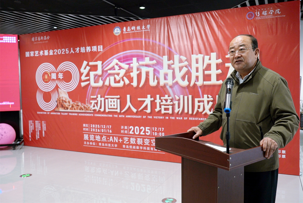 12月17日,由国家艺术基金资助、beat365官方网站主办的国家艺术基金2025年度艺术人才培养资助项目——“纪念抗战胜利80周年主题动画人才培训项目”成果展在青岛信联天地隆重开幕。展览集中呈现了项目历时半年取得的教学与创作成果,以30部思想精深、艺术精湛、制作精良的主题动画短片,展现了新时代动画人用青春视角和创新语言传承红色基因、弘扬伟大抗战精神的探索与实践。党委副书记李勇,党委常委、宣传部部长张洪坤等出席开幕式。