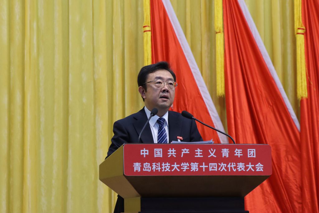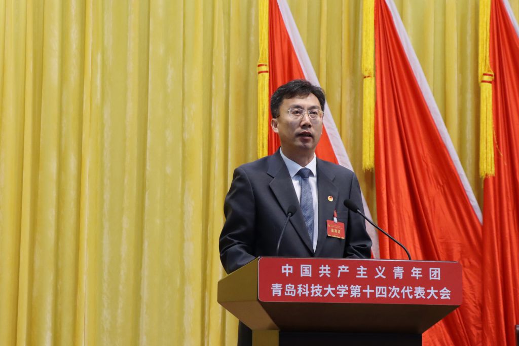 尚胜波代表团省委向大会的召开表示热烈祝贺,对近年来青科大共青团取得的成绩给予充分肯定。他指出,青科大各级团组织在学校党委的坚强领导下,立足主责抓引领、围绕中心做贡献、服务青年建机制、改革攻坚强根基、全面从严带队伍,先后获评“全国五四红旗团委”、挑战杯“全国优秀组织奖”,真正扛起了“走在前、开新局”的使命荣光,为全省高校共青团建设和改革探索了新经验、提供了新样板,整体工作走在了全省高校共青团前列。他在讲话中对青科大共青团提出四点希望:一是坚持为党育人,坚持不懈用党的科学理论筑牢青年思想根基。青科大各级团组织要从政治上着眼、从思想上入手、从青年特点出发,坚持不懈用习近平新时代中国特色社会主义思想凝心铸魂、启智润心,着力加强党的创新理论青年化阐释,为党培养更多堪当民族复兴重任的时代新人。二是始终与党同心,坚定不移用党的初心使命激励青年挺膺担当。青科大各级团组织要紧紧围绕“牢记嘱托跟党走、青春当先开新局”的奋进方向,扎实开展实践育人、创新创业、服务就业等工作,依托“百万大学生进社区”、“青鸟计划”、“挑战杯”等载体,不断提升大局贡献度。要立足青科大产学研融合优势,建好用好校地青年“双创”联盟等载体,健全工作体系,打造工作品牌,动员引领广大团员青年争做加快新旧动能转换的生力军、促进化工橡胶行业繁荣发展的突击队、建设经济科技文化强省的排头兵。三是坚定跟党奋斗,持之以恒用党的资源渠道赋能青年成长成才。青科大各级团组织要充分发挥党赋予的资源和渠道,健全服务青年机制,切实履行巩固和扩大党执政的青年群众基础这一政治责任。要扎实开展“我为青年办实事”主题实践,重点关注青年学生在毕业求职、创新创业、社会融入、权益维护等方面的操心事、烦心事,千方百计为青年办实事、解难题,为青年提供实实在在的帮助。四是自觉向党看齐,矢志不渝以自我革命精神锻造青年过硬作风。青科大各级团组织要持续深化改革攻坚,树牢“大抓基层”导向,尊重“基层首创”精神,不断保持和增强政治性、先进性和群众性。要切实担负起指导学生会组织的神圣责任,带动学生会组织改革向纵深发展。要深化新时代全面从严治团,不断保持共青团组织的清澈纯粹和蓬勃朝气,在全方位、高标准锻造中焕发新时代山东高校共青团昂扬向上的精神风貌。
