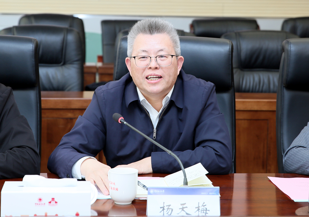杨天梅对中国海洋大学长期以来支持、帮助学校发展表示感谢,对中国海洋大学取得的发展成就表示祝贺。他简要介绍了学校办学特色和“十五五”期间的重点工作。他表示,中国海洋大学是高水平行业特色大学的典范,办学底蕴深厚、办学成果丰硕,是青科大学习的标杆。中国海洋大学的海洋学科基础研究优势突出,青科大深耕海洋传感、海洋化工、海洋新材料、海洋装备等领域,成果转化与社会服务成效比较突出,双方优势互补,合作前景广阔。期待双方在联合申报大奖大项目、深化人才联合培养、加强干部挂职与教师访学、融入青岛科创大走廊等方面深化合作,推动“海洋+”与“橡胶化工+”双向赋能,协同突破海洋领域“卡脖子”技术难题,共同为海洋强国建设和山东打造现代海洋经济发展高地贡献新的更大力量。