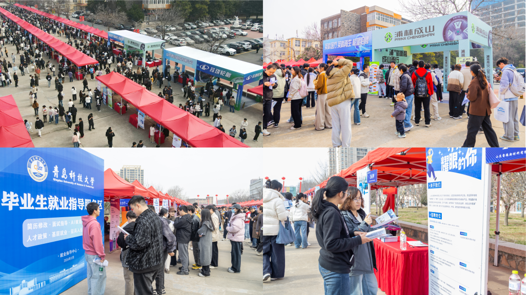 3月24日,一场充满“同窗情”的招聘会在四方校区小五四广场举行,第四届中国橡胶行业双选会暨校友专场招聘会火热开启。学校党委常委、副校长王震深入现场调研指导,了解企业招聘需求与学生求职动态。各学院(校区)、相关职能部门负责人及一线教师、辅导员走进现场,向用人单位精准推介优秀学子。