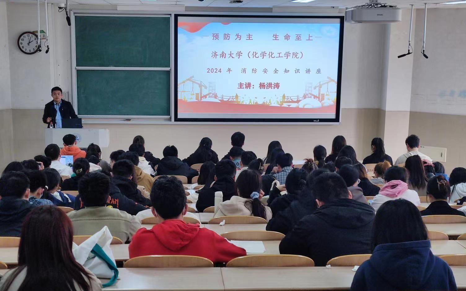 济南市消防专家杨洪涛同志受邀带来《预防为主,生命至上》消防安全知识讲座,详细介绍了火灾事故的成因、其严重危害以及应对方法和建议,真实的案例和生动的现场演示切实提高了同学们的安全意识。研究生辅导员李娟老师号召全体学生党员和入党积极分子发挥带头作用,主动排查校园安全隐患。与会同学在活动结束后迅速行动,对实验室和宿舍安全问题展开摸排与整改。活动当日,学院还组织了应急疏散演练和实操培训,公寓辅导员肖瑶瑶老师带领学生代表参加,不仅进一步增强了同学们的安全意识,也提高了大家对突发事件的应急处理能力。