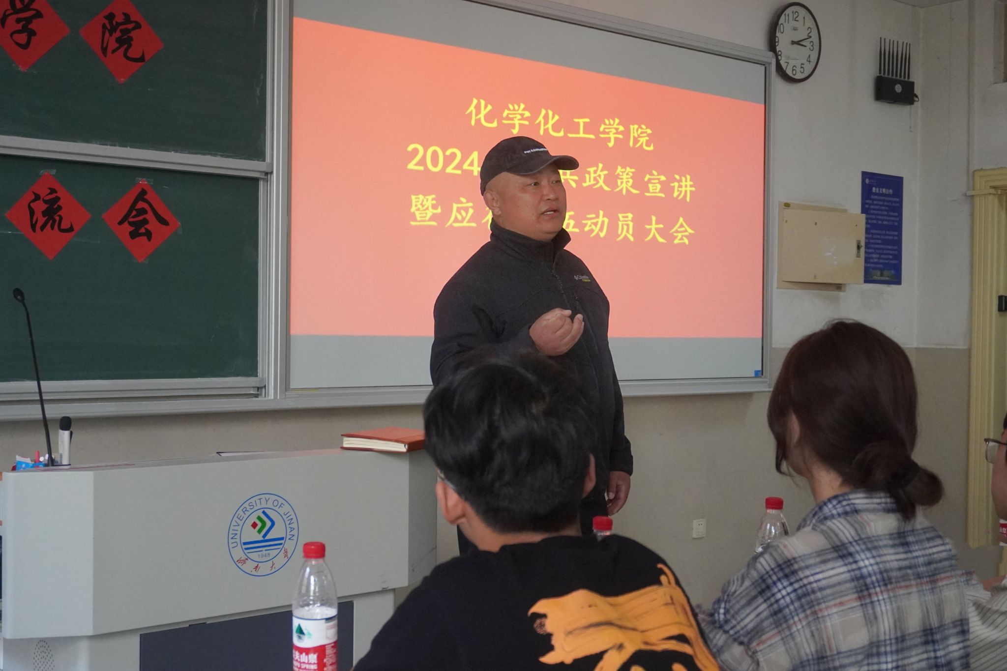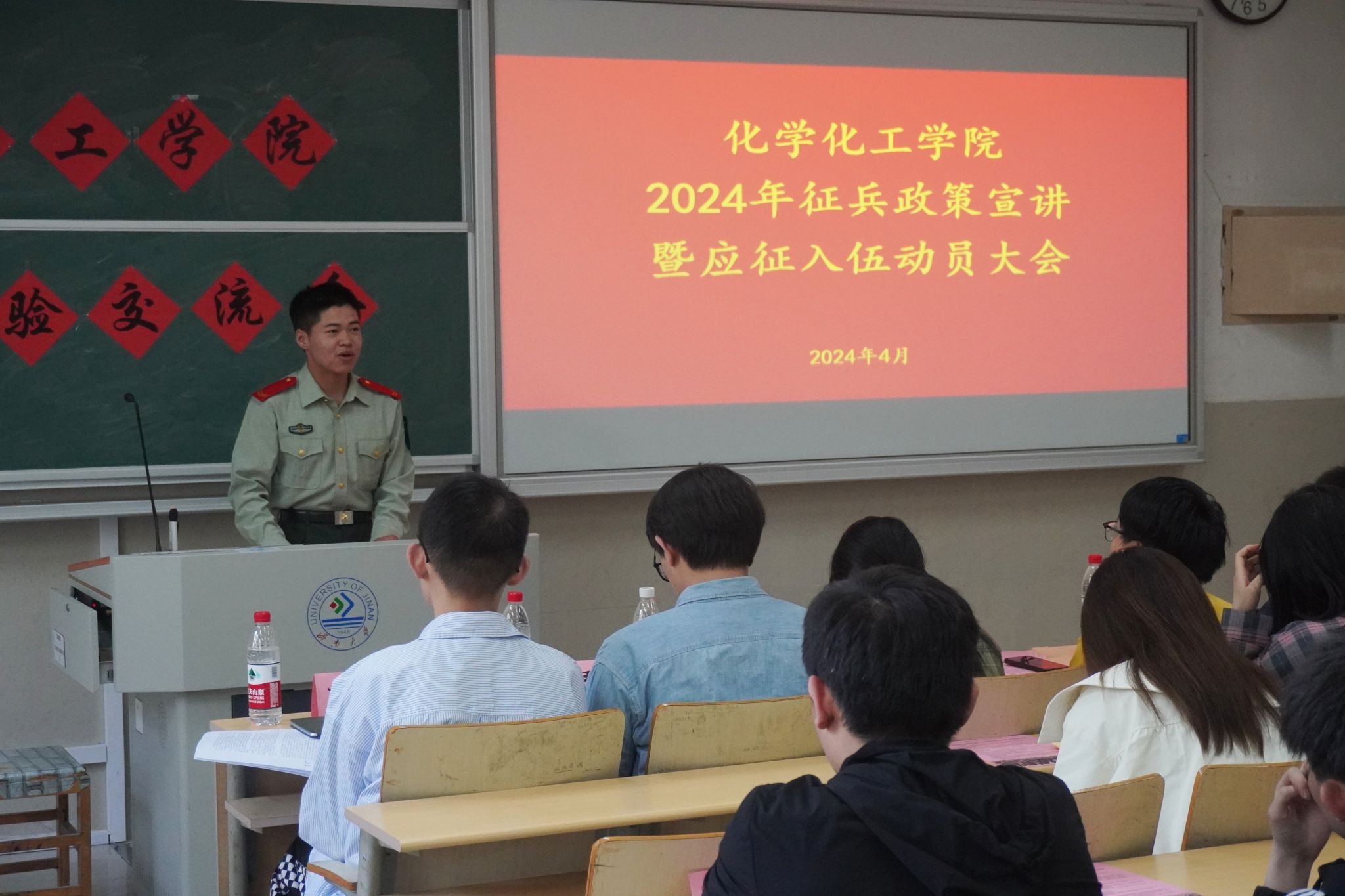 为贯彻落实国家征兵政策,扩大征兵政策宣传的影响力和辐射面,进一步鼓励和引导大学生应征入伍,4月16日和18日,AWC万象城娱乐组织召开“志存高远砺青春·建功立业强军梦”2024年征兵政策宣讲暨应征入伍动员大会。学校党委武装部人武科科长李英武,学校第4届教导大队退役大学生应化2105刘杰、材料2212颜旭、化学2302卢国琰、环工2304王镇彬担任主讲人,学院学生工作办公室相关负责老师出席此次活动。