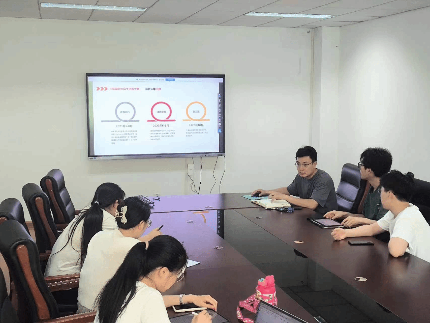 交流会中,高鑫对中国国际大学生创新大赛赛事通知进行解读,并结合赛事新变化,与小挑比赛进行对比解释,最后结合案例对赛事PPT和计划书撰写要求及注意事项进行讲解。