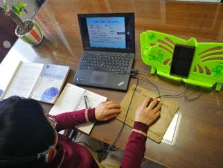 (2)课中:正式开始上课后再次提醒学习的重点内容。以上传学生在线学习照片的形式抽查学生的学习状态。通过随机个别提问的在线互动答疑方式,检验学生的学习效果。