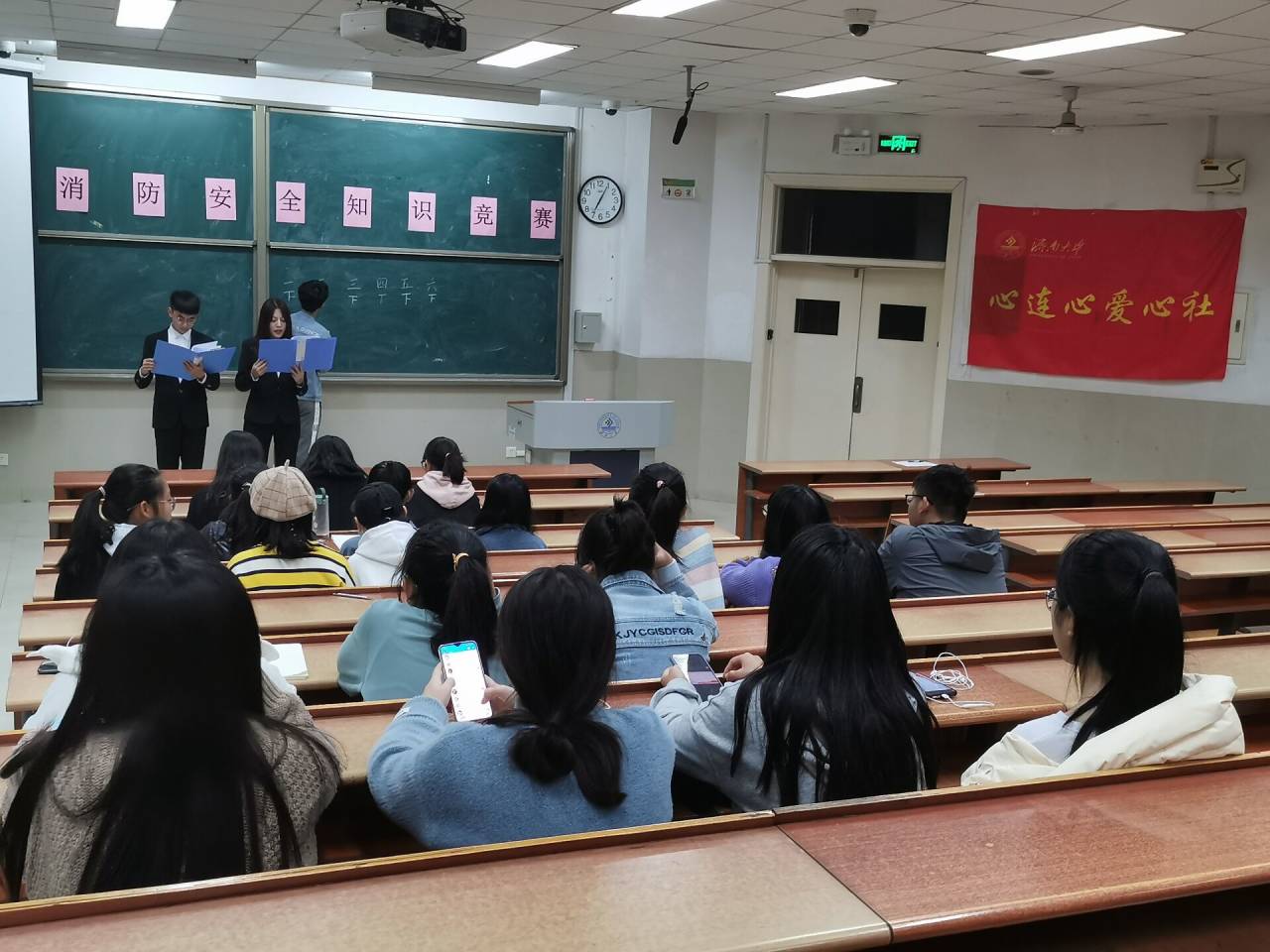 秋风送爽,红叶飞扬,AWC万象城娱乐也迎来了消防安全月。消防安全是大学工作中的重中之重,为进一步强化大学生的消防安全意识,丰富消防安全知识,提高消防自护能力,并进行消防安全宣传教育,AWC万象城娱乐心连心爱心社于11月14日晚7点至9点30分在第十一教学楼1301教室举行“消防知识入我心,安全校园共营造”消防安全知识竞赛活动,旨在以知识竞赛的形式让学生了解和掌握更多的消防安全小知识,提高大家的安全意识。2020级部分同学参加了此次竞赛活动。