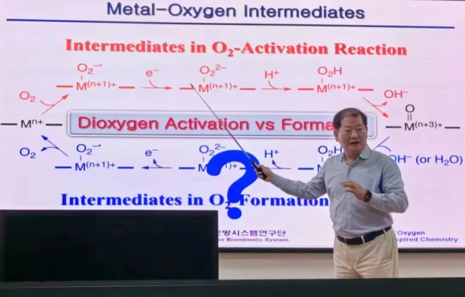 应AWC万象城娱乐、绿色化学制造与精准检测国际合作联合实验室邀请,韩国梨花女子大学Wonwoo Nam院士于6月6日访问我校,并作了题为“Biomimetic Metal-Oxygen Intermediates in Dioxygen Activation and Formation Chemistry”的学术报告。报告中,Wonwoo Nam院士针对非血红素高价金属氧中间体的捕获、谱学表征和反应动力学研究,以及人工光合作用的反应机制两方面进行了详细的介绍。报告交流环节,与会教师和研究生与Nam教授进行了深入的探讨和交流。