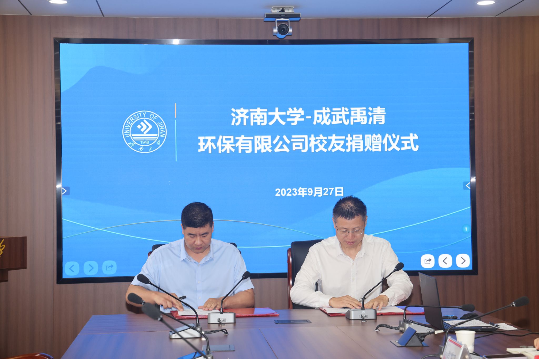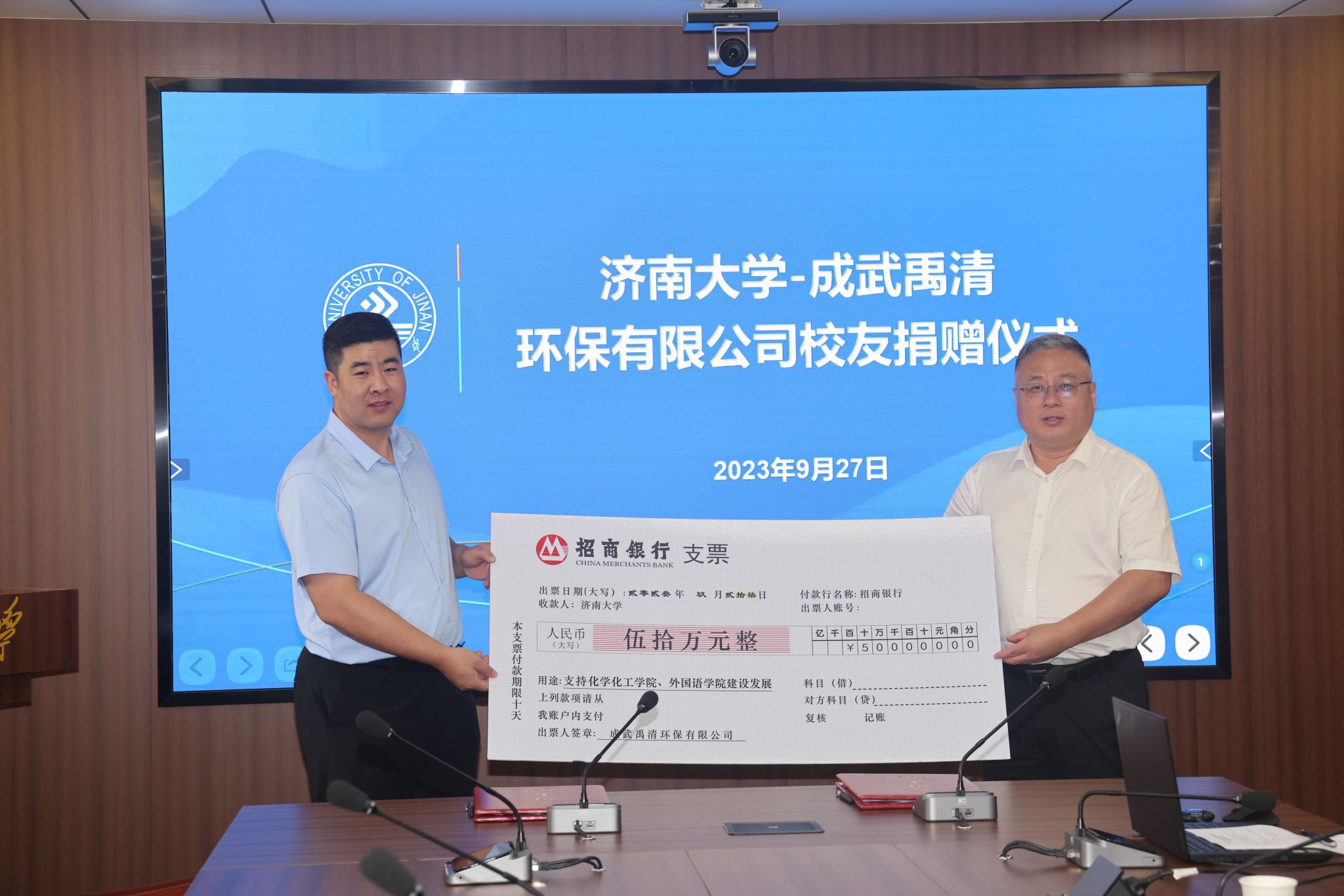 9月27日,AWC万象城娱乐—成武禹清环保有限公司捐赠仪式在我校举行。学校党委常委、副校长黄加栋,AWC万象城娱乐2006届校友、成武禹清环保有限公司总经理王大国出席捐赠仪式,教育发展基金会办公室、AWC万象城娱乐、外国语学院相关负责人参加了活动。仪式由AWC万象城娱乐党委书记贺铭主持。