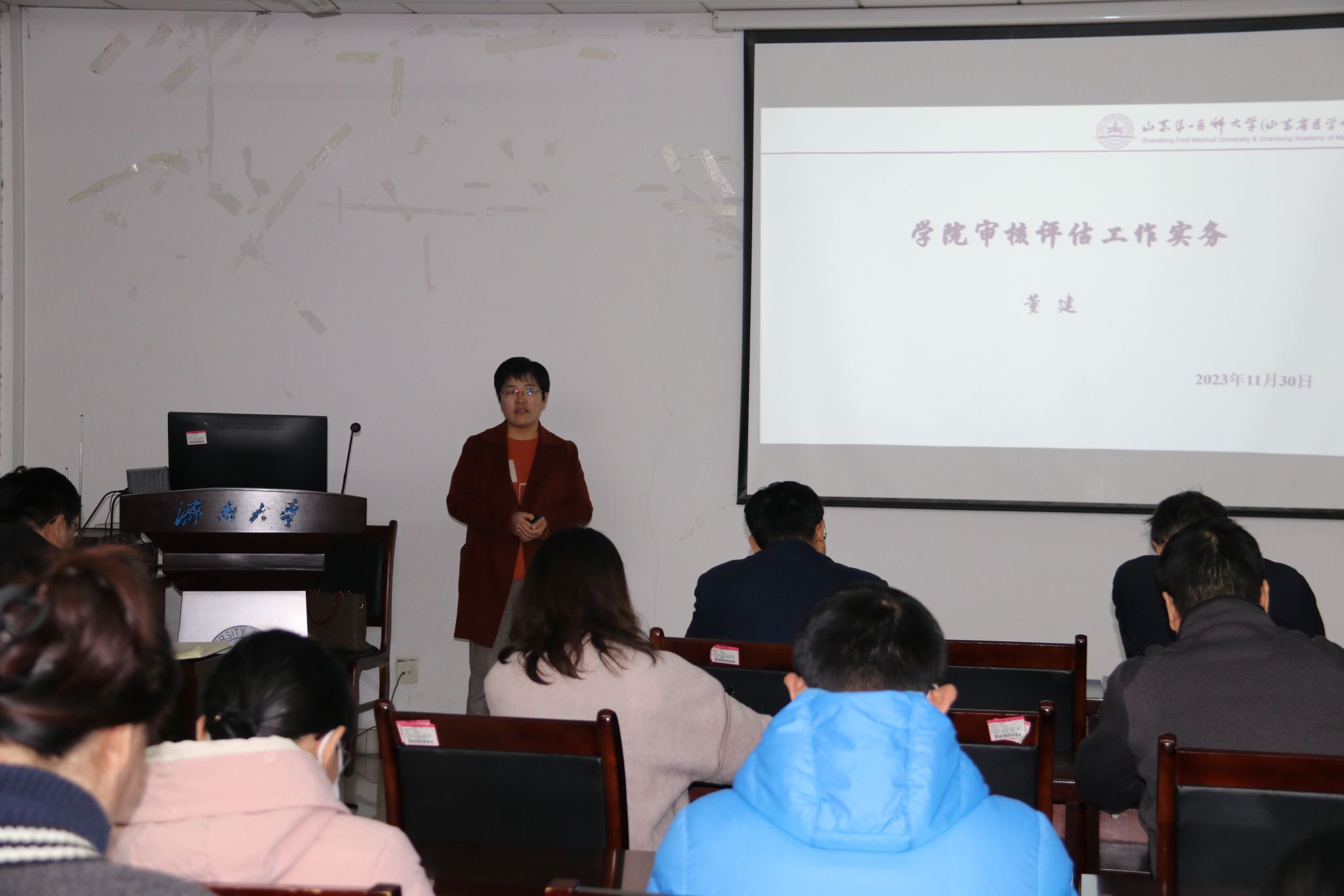 董建教授以《学院审核评估工作实务》为题,从“如何认识新一轮审核评估”“山一大审核评估情况”“学院审核评估工作重点”三个方面,深刻解释了新一轮审核评估的指导思想、基本原则,详细阐释了参加审核评估的目的以及学院应树立的观念,系统梳理了新一轮审核评估的完整工作流程,分享了山东第一医科大学参加新一轮审核评估的做法,从“学院的主要任务”、“专任教师的主要工作任务”、“学院和专业应树立的思想观念”、“学院高度重视的几项问题”等几方面详细说明了学院审核评估的工作重点。董教授的分享内容丰富、讲解深刻,为万象城进一步做好本科教育教学审核评估工作、推进学院本科教学的高质量发展提供了科学指导和有效的指引。