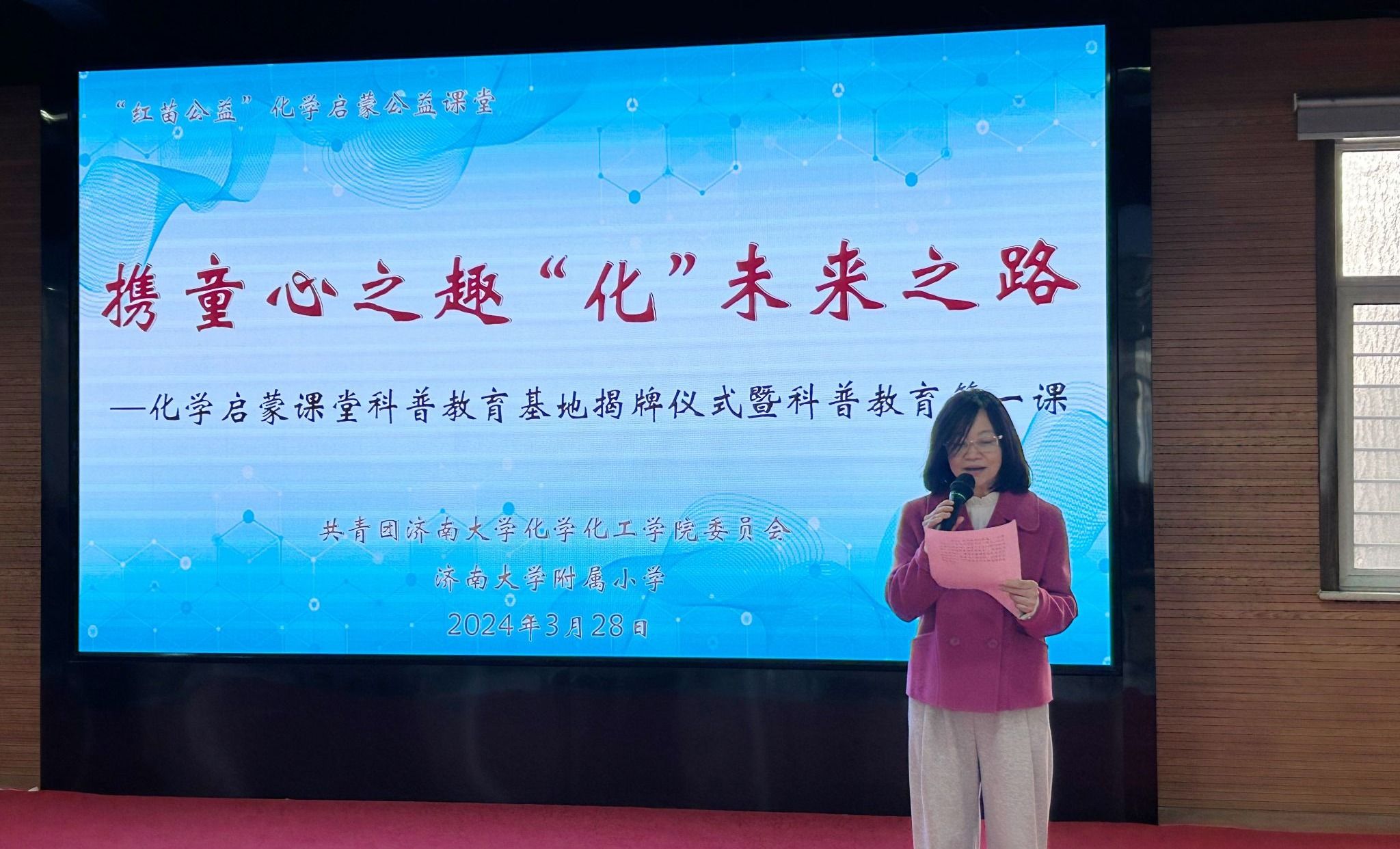 严婷对莅临此次活动的领导老师、家长代表表示热烈欢迎。她表示,希望借助化学启蒙课堂科普教育平台深入探索和实践大中小学科学教育协同育人模式,将高校的教育理念引入基础教育阶段,为附属小学的学生们提供更为广阔的学习视野和更为深入的学习体验,不断推进附属小学内涵发展和品牌建设,进一步打造“具有大学特制的、孩子们喜欢的附属学校”。