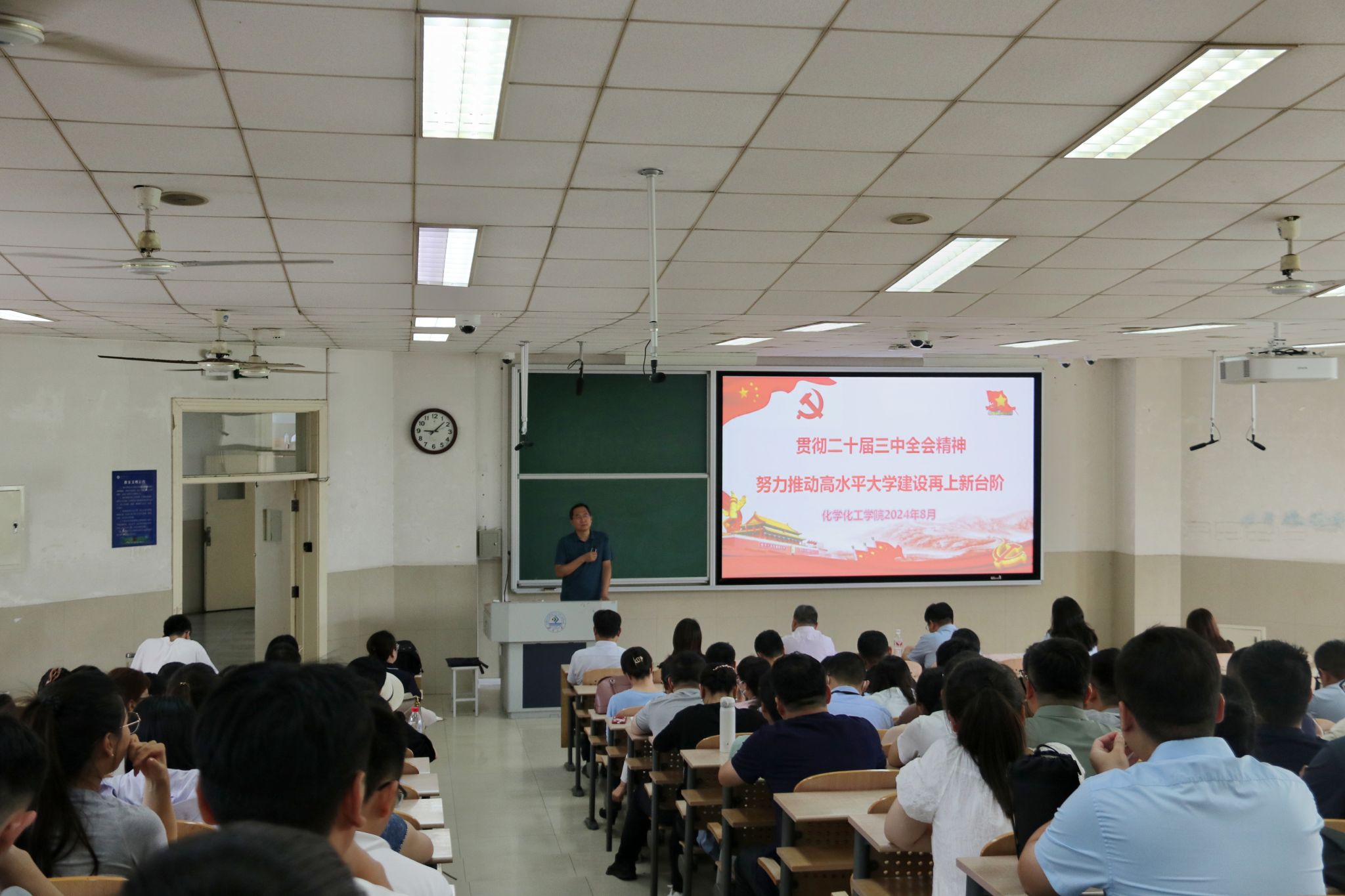 贺铭带领全体教职工共同学习学校党委书记刘春华在学校四届五次全委会扩大会议上作的题为《深入学习贯彻党的二十届三中全会精神 努力推动高水平大学建设再上新台阶》的工作报告。他强调,学院全体教职工要深刻领会精神实质,增强“走在前、挑大梁”使命意识,进一步统一思想认识,锚定年度目标任务,找差距、强弱项、促发展,不断探索新思路、新方法、新路径,以更加饱满的热情和更加扎实的作风投入到新学期的各项工作中。