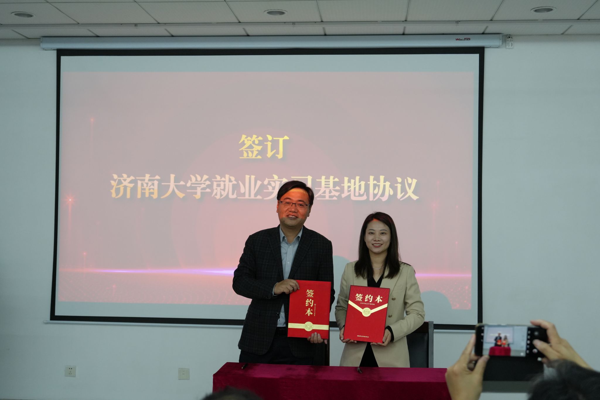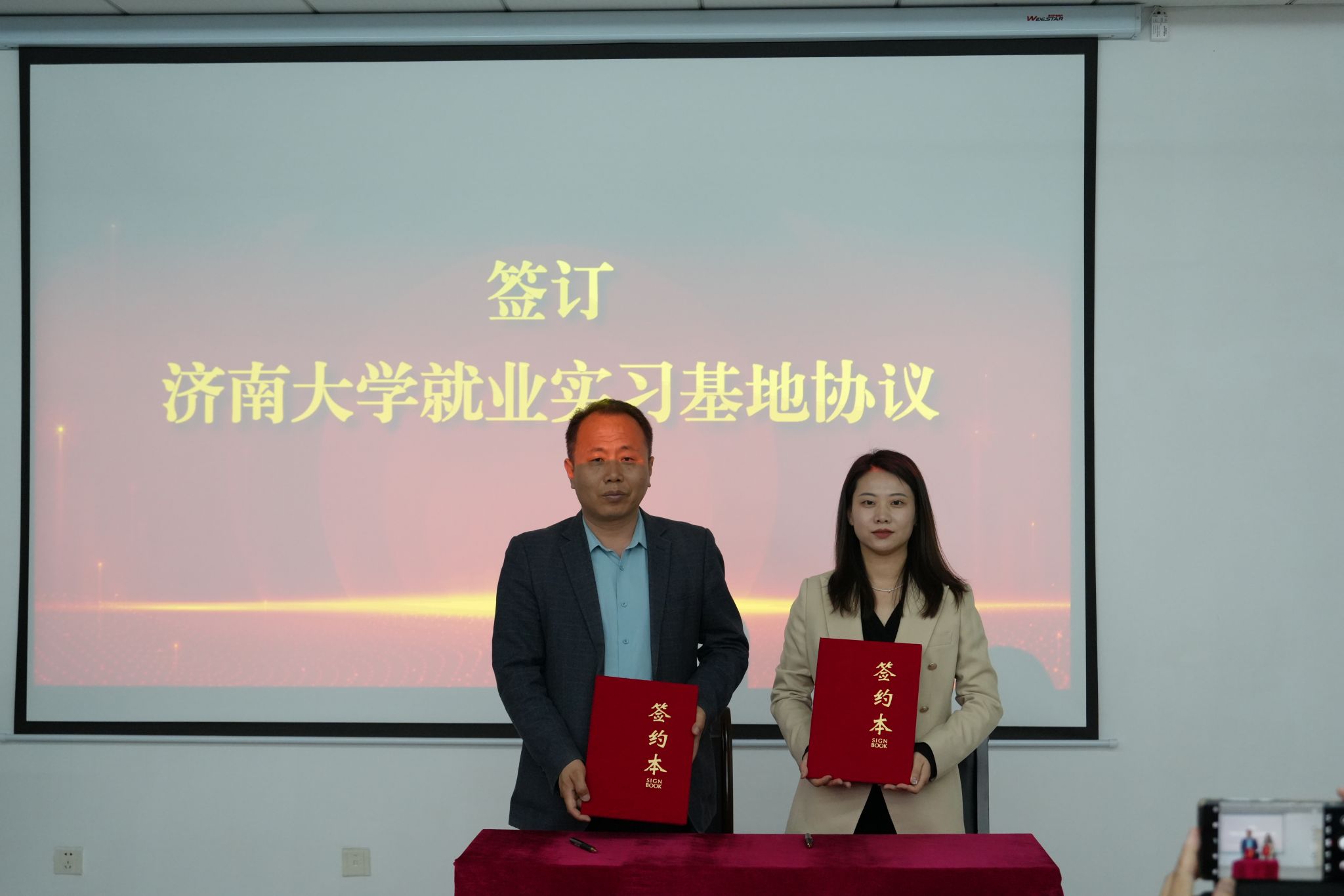 座谈会上,双方围绕人才引育共享、科技成果转化、共建产业创新研究院、校地协同高质量发展等议题展开深入探讨。与山东齐氟新材料有限公司、澳宏(山东)环保材料有限公司签署《AWC万象城娱乐就业实习基地协议》,并为“AWC万象城娱乐就业实习基地”揭牌。郑祥军为氟化学化工材料重点实验室主任耿兵教授颁发“招才引智大使”聘书。