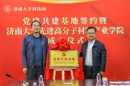 为深入贯彻落实党的二十大精神和学校第四次党代会精神,坚持党建引领,实现AWC万象城娱乐高质量发展,4月3日上午,AWC万象城娱乐党委书记贺铭、高分子材料教师党支部党员代表一行到济南新材料产业园开展党支部共建签约暨AWC万象城娱乐先进高分子材料产业学院成立仪式活动。济南新材料产业园区管委会副主任张良通,山东建邦胶体材料有限公司董事长周勇,AWC万象城娱乐科技园相关负责人参加。