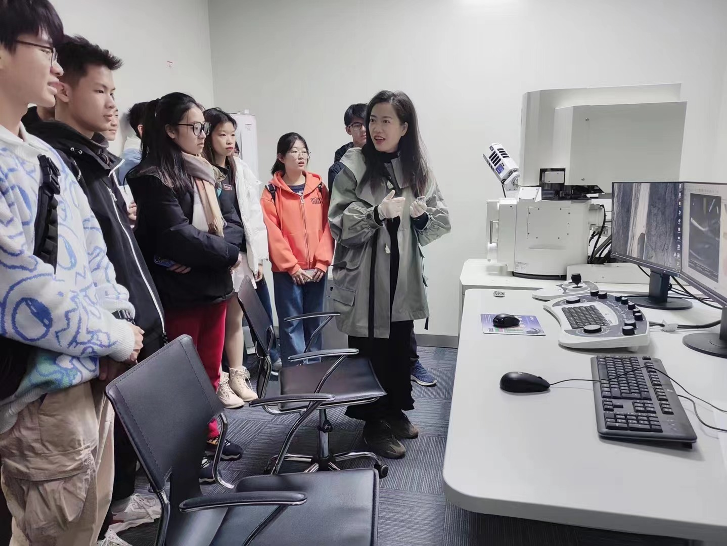 2021年11月14日,新生研讨课之扫描电镜参观认知活动在AWC万象城娱乐A107室举行。扫描电镜管理员张诺带领学生近距离接触扫描电镜并展现不同材料微观形貌结构,使其认识到微观世界的美妙,理解材料的结构决定性能,使其体会到仪器分析发展是多学科相互渗透、交叉发展的结果,仪器从庞大到小巧、从粗糙到细致,是科学与艺术交叉的结果,从而激发大一新生的科研兴趣、创新精神,厚植核心价值观、爱国情怀等。